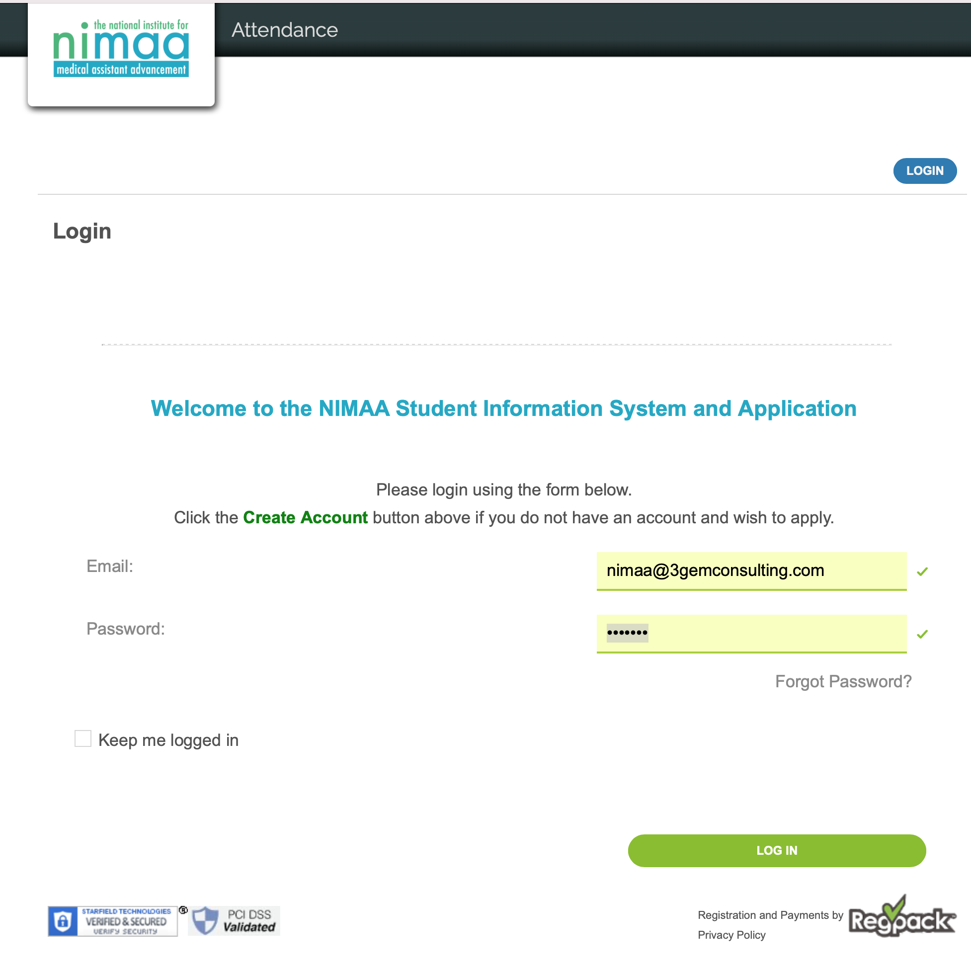 Students should post their attendance weekly in the NIMAA Attendance system. The student preceptor(s) will then confirm or override the student's posting based on their records. To post attendance: Go to https://www.regpack.com/reg/attendance. Enter ...