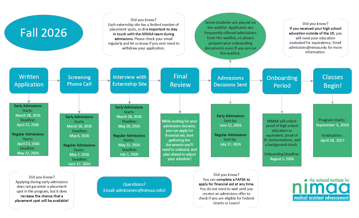 After all interviews are complete, admissions decisions will be sent out. Check the timeline below for the important dates.